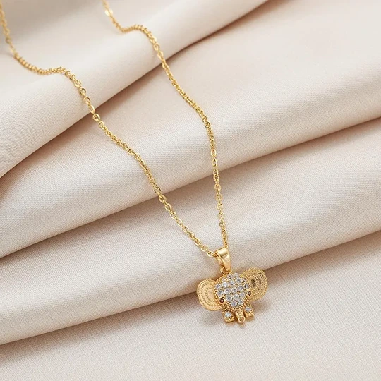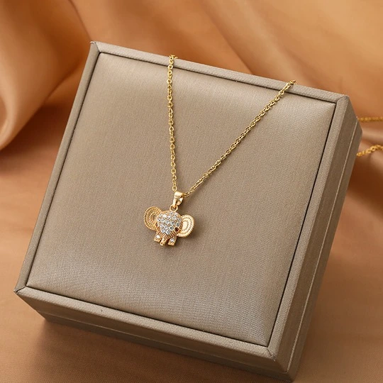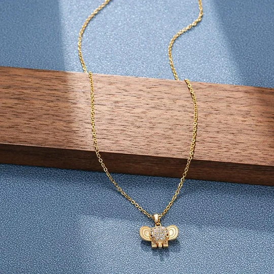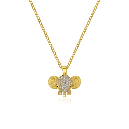 Elevate your jewelry collection with this exquisite gold plated elephant necklace, adorned with sparkling stones that add a touch of elegance and sophistication. The intricate design symbolizes strength and wisdom, making it a perfect gift for yourself or a loved one. Its versatile style allows it to be worn on any occasion, ensuring you shine brightly wherever you go. Embrace luxury and charm with this stunning piece that effortlessly enhances any outfit