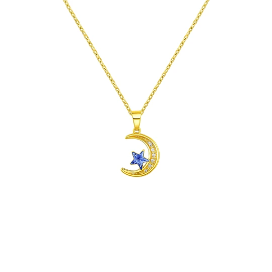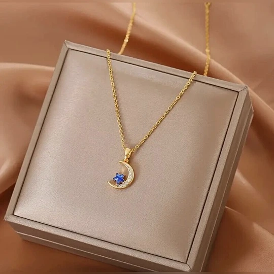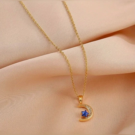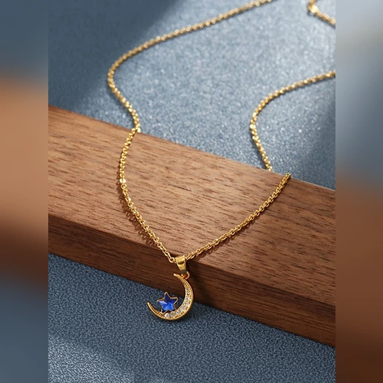 Elevate your jewelry collection with this exquisite gold plated necklace featuring a stunning blue moon pendant. Crafted with precision, the delicate gold plated chain beautifully complements the enchanting blue moon, creating a captivating focal point that adds a touch of elegance to any outfit. Perfect for both casual and formal occasions, this necklace is a timeless accessory that embodies sophistication and charm, making it an ideal gift for yourself or a loved one