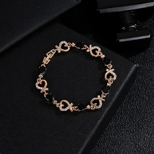 Elevate your accessory game with this stunning black and gold plated bracelet, featuring a charming heart shape that symbolizes love and elegance. Crafted with high-quality materials, this bracelet not only adds a touch of sophistication to any outfit but also serves as a perfect gift for someone special. Its versatile design ensures it can be worn on any occasion, making it a must-have addition to your jewelry collection