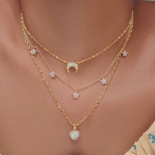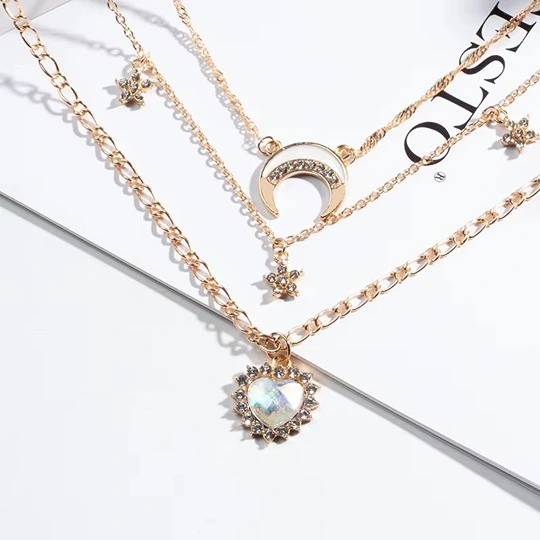 Elevate your jewelry collection with our exquisite gold plated moon and star necklace, a stunning piece that beautifully combines celestial charm with elegant design. Crafted with precision, this necklace features a delicate moon and star pendant that adds a touch of whimsy to any outfit, making it perfect for both casual and formal occasions. The lustrous gold plating ensures durability and a radiant shine, while the adjustable chain allows for a customizable fit. Embrace your unique style and let this enchanting necklace be a symbol of your dreams and aspirations